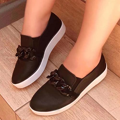 Specificaties: Outdoor Lace-up Flats Schoenen Leisure Vrouwen Ademend Kleur Casual Sneakers Mode Vrouwen casual schoenen Slip on Sneakers voor Mannen Breed (zwart, 5.5)
