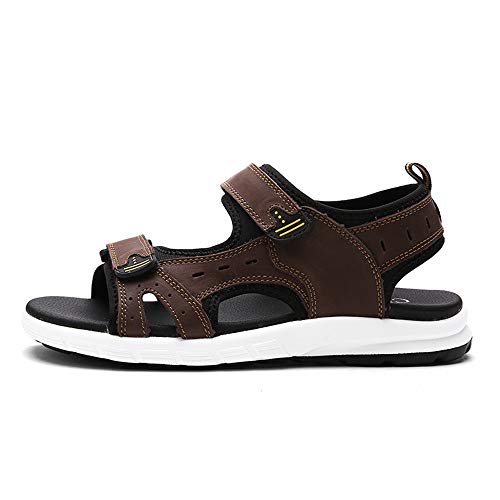 XYAL0003001 Xingyue Aile Slippers & Sandalen Outdoor Water Sandalen Voor Mannen En Wonmen, Slip Op Stijl OX Lederen Schoenen Haak & Loop Band Pure Kleuren Schoenen (Kleur: Donker Bruin, Maat : 44 EU)